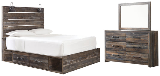 Derekson Full Panel Bed with 2 Storage Drawers with Mirrored Dresser and Chest