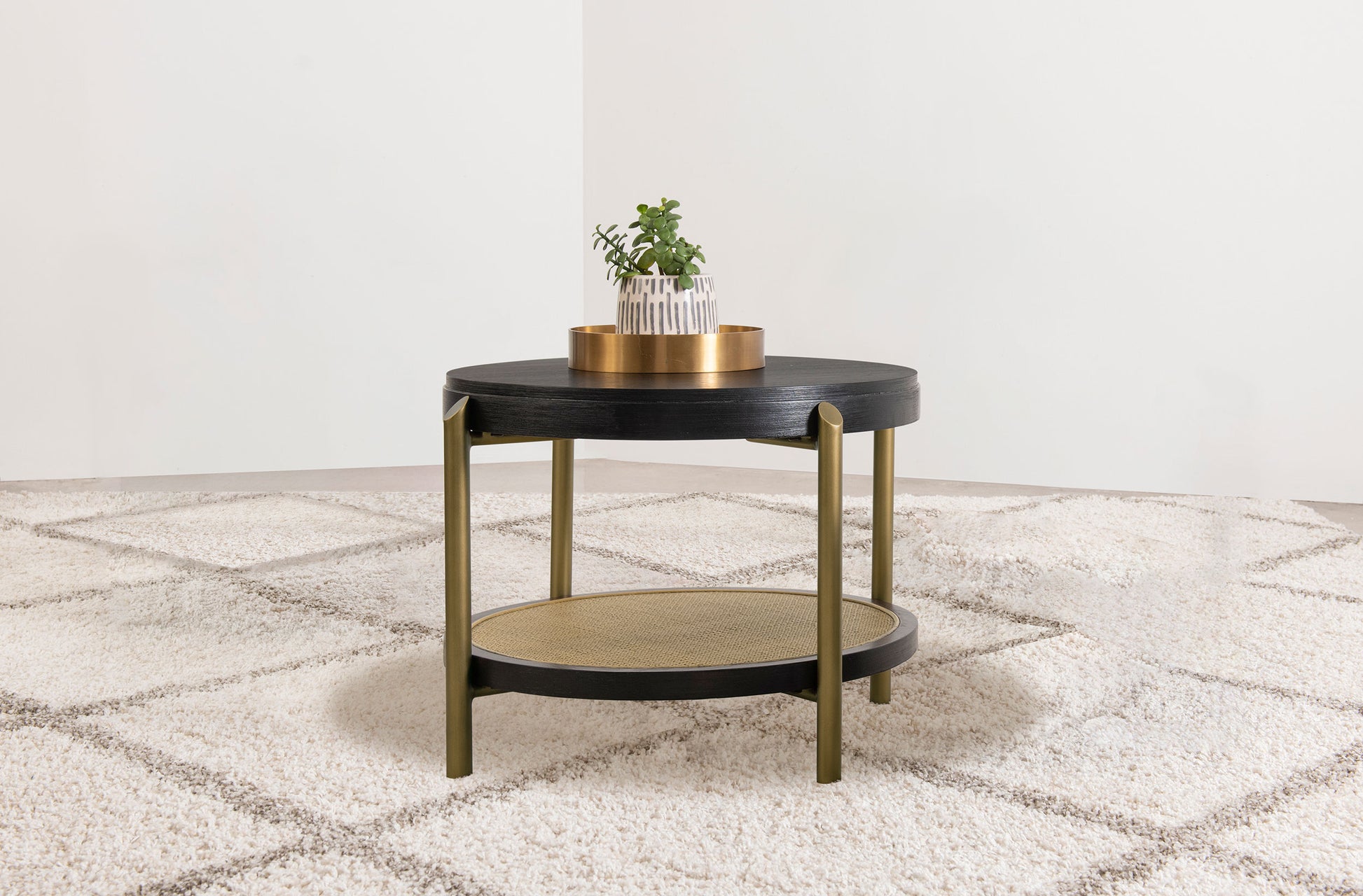 Arini Round End Side Table With Storage Shelf Sand Wash