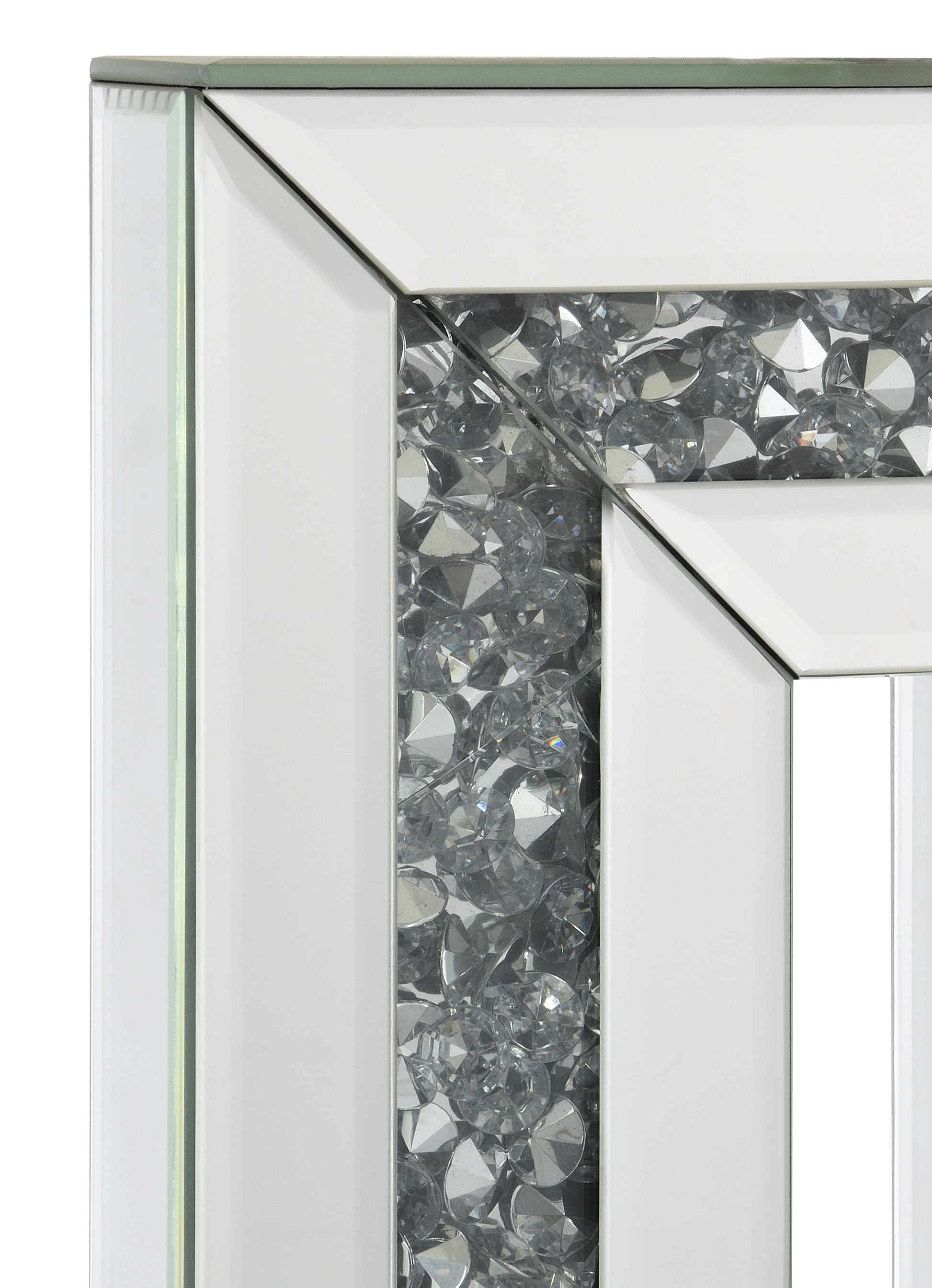 • Beveled mirrored surfaces enhance depth and reflect ambient light