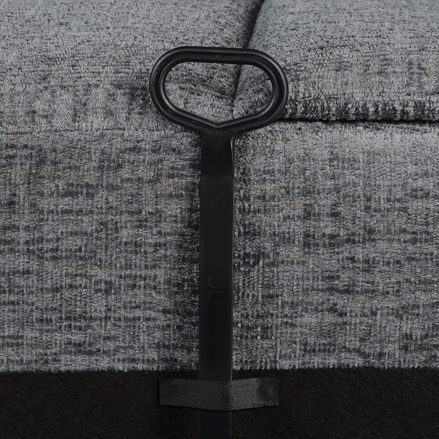 • Plush cushions and supportive seating in charcoal gray upholstery