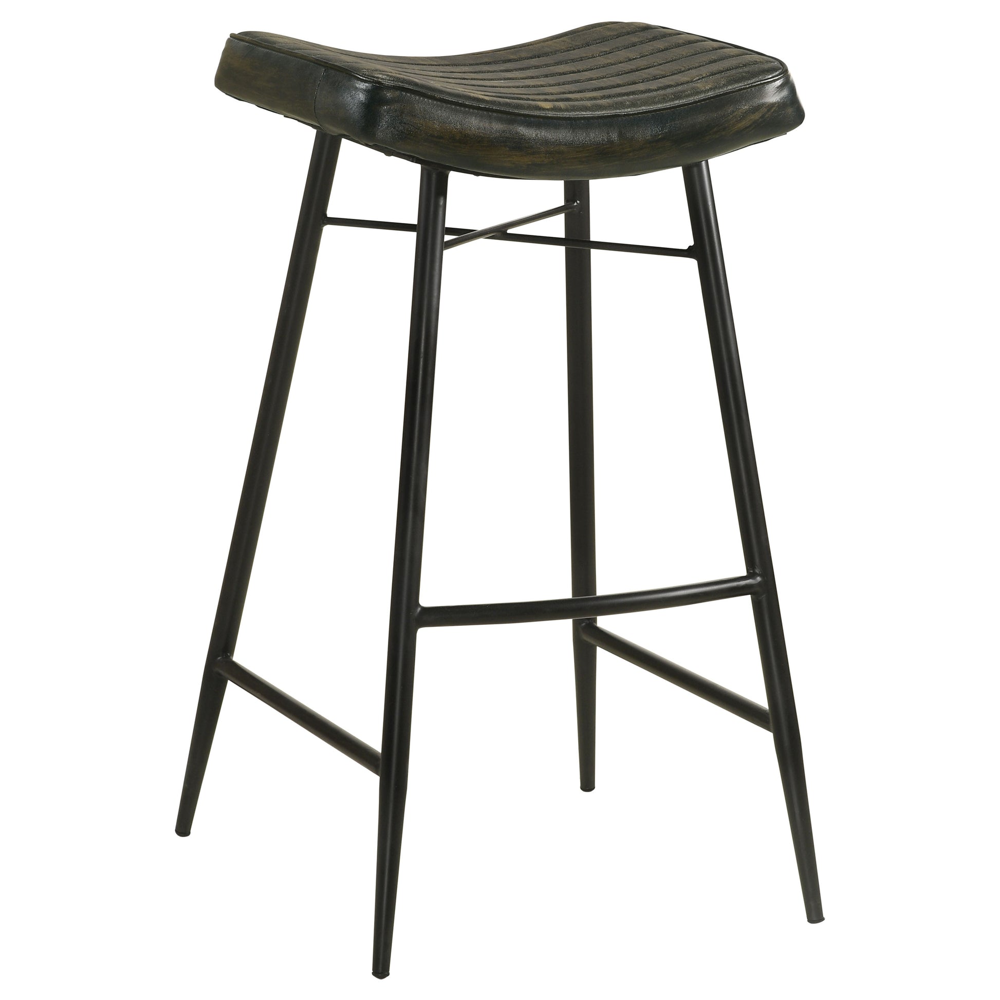 • Add a touch of classic style to your kitchen or bar with a backless stool featuring rich antiqued leather upholstery and channel tufting