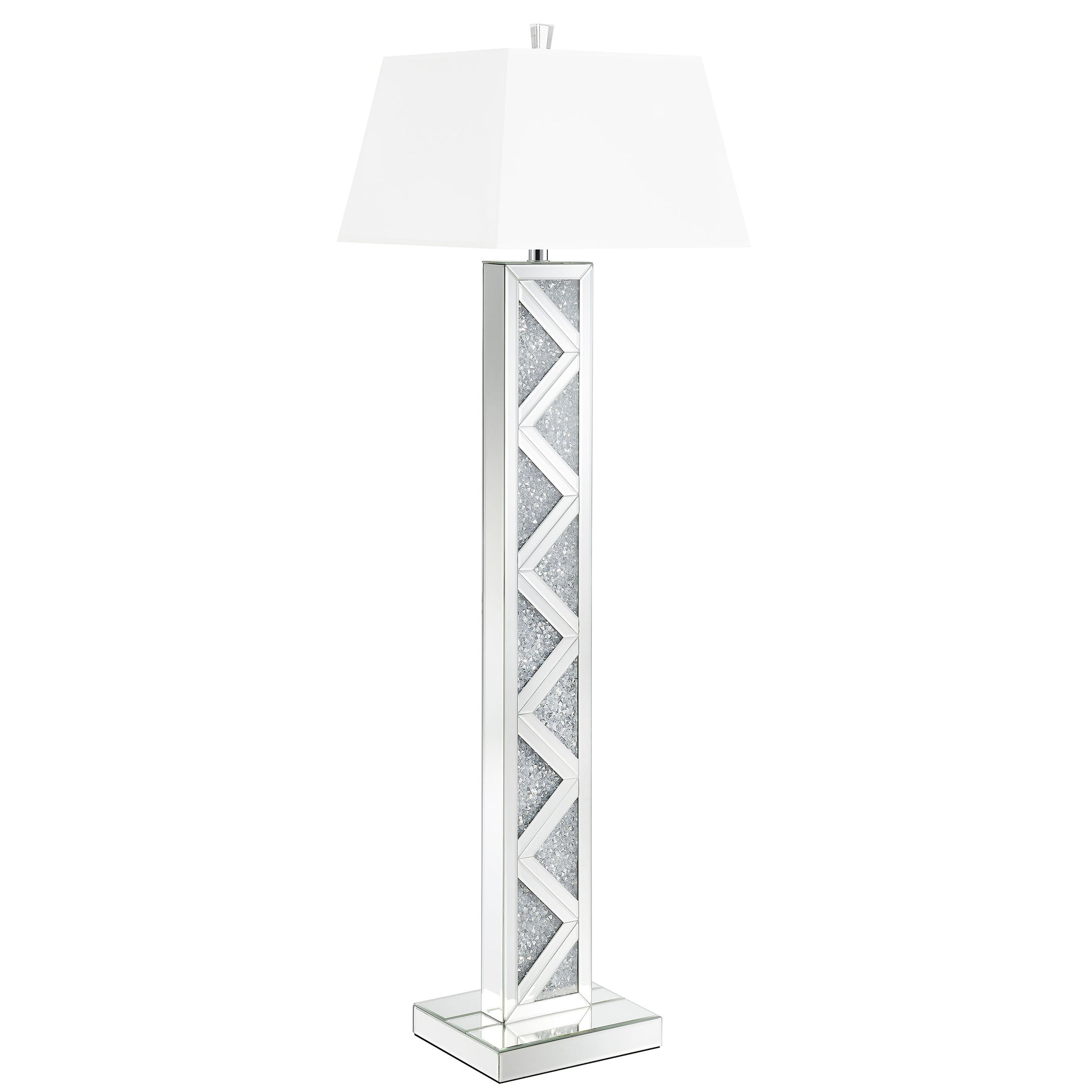 • Contemporary floor lamp with geometric mirrored base and crystal-like insets