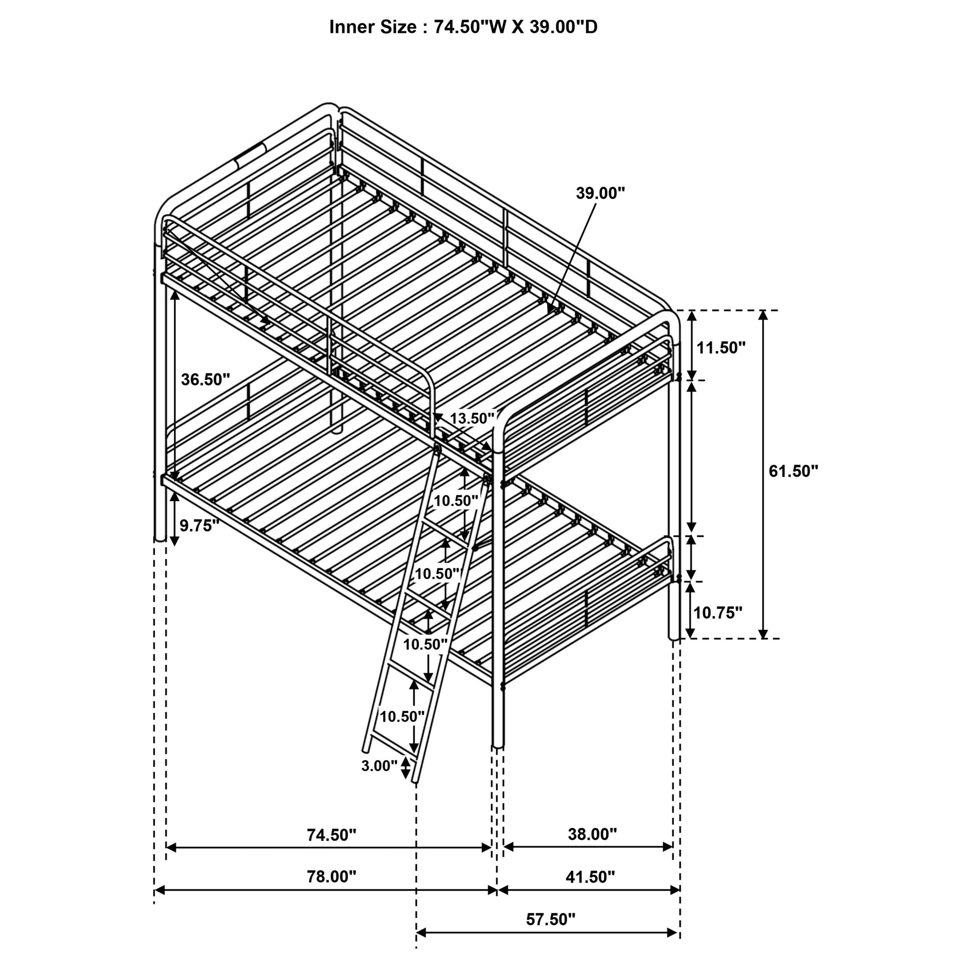 • Angled built-in ladder allows easy access to upper bunk with a compact footprint