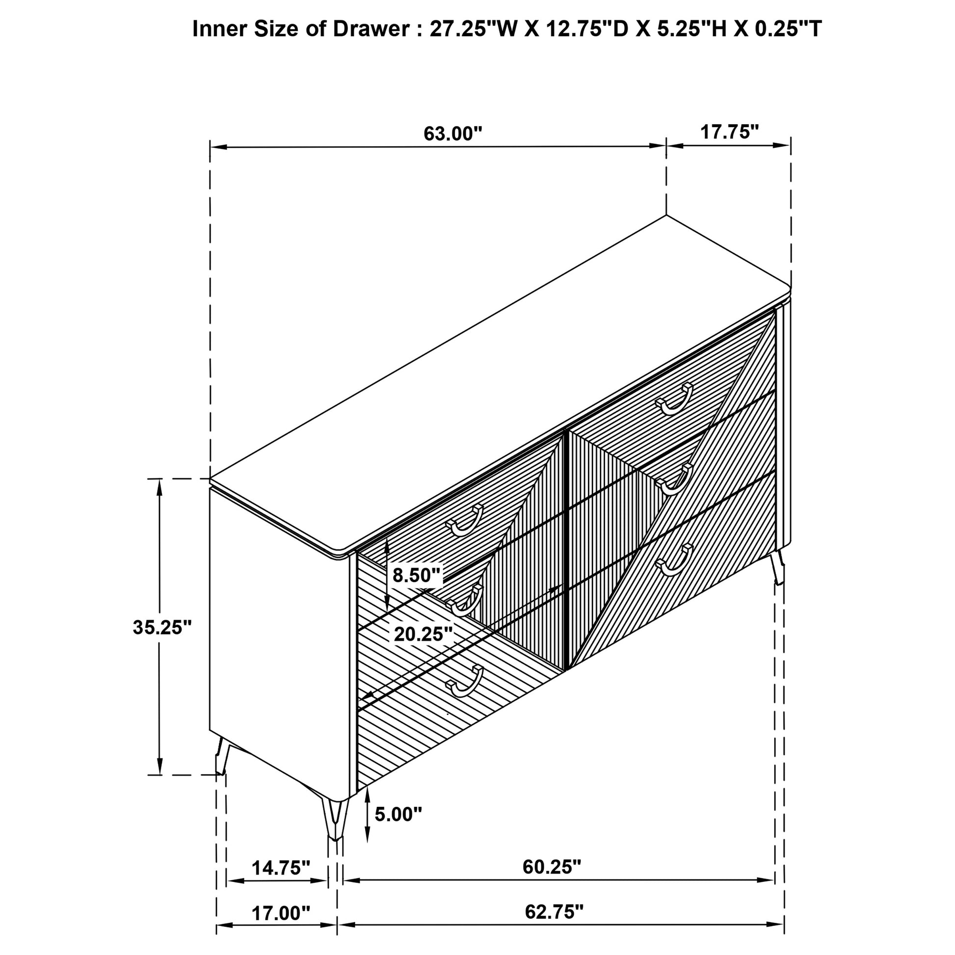 • Top drawers are fully lined in black felt to protect valuables and add elevated utility