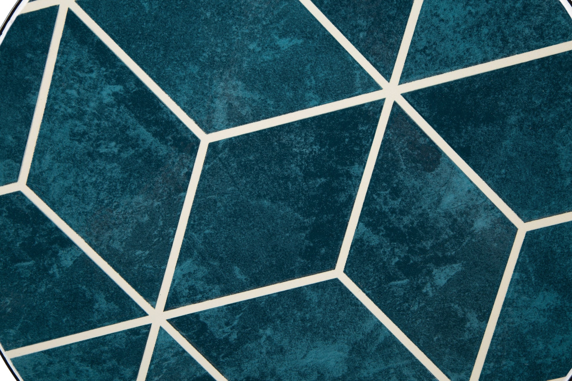 Details | Set of 2, Made with ceramic tile and metal, Two-tone teal glaze, Base with black finish, Diamond pattern top, Nesting design, Assembly required | |