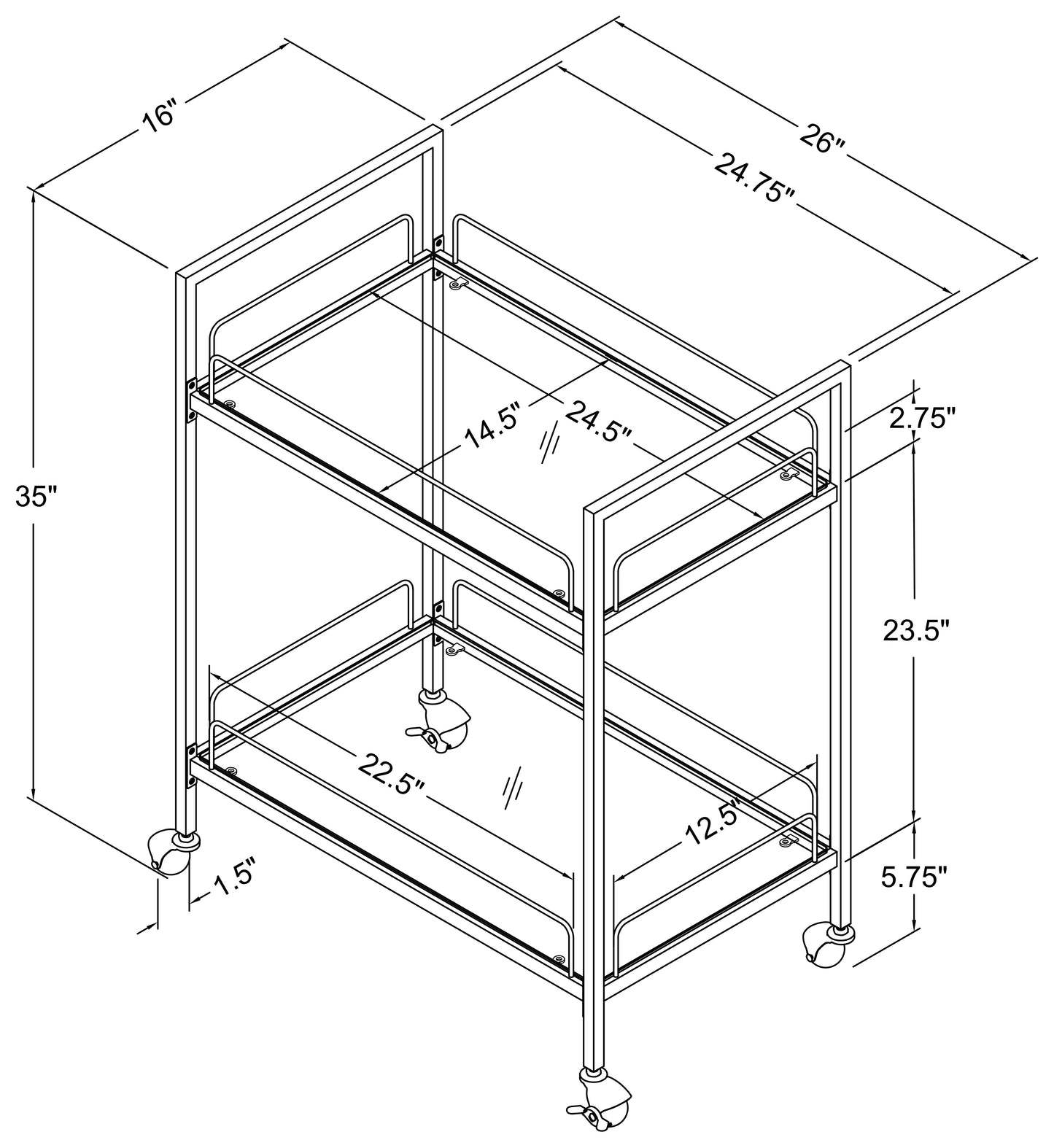 Curltis 2-tier Rectangular Glass Shelf Metal Bar Cart Black