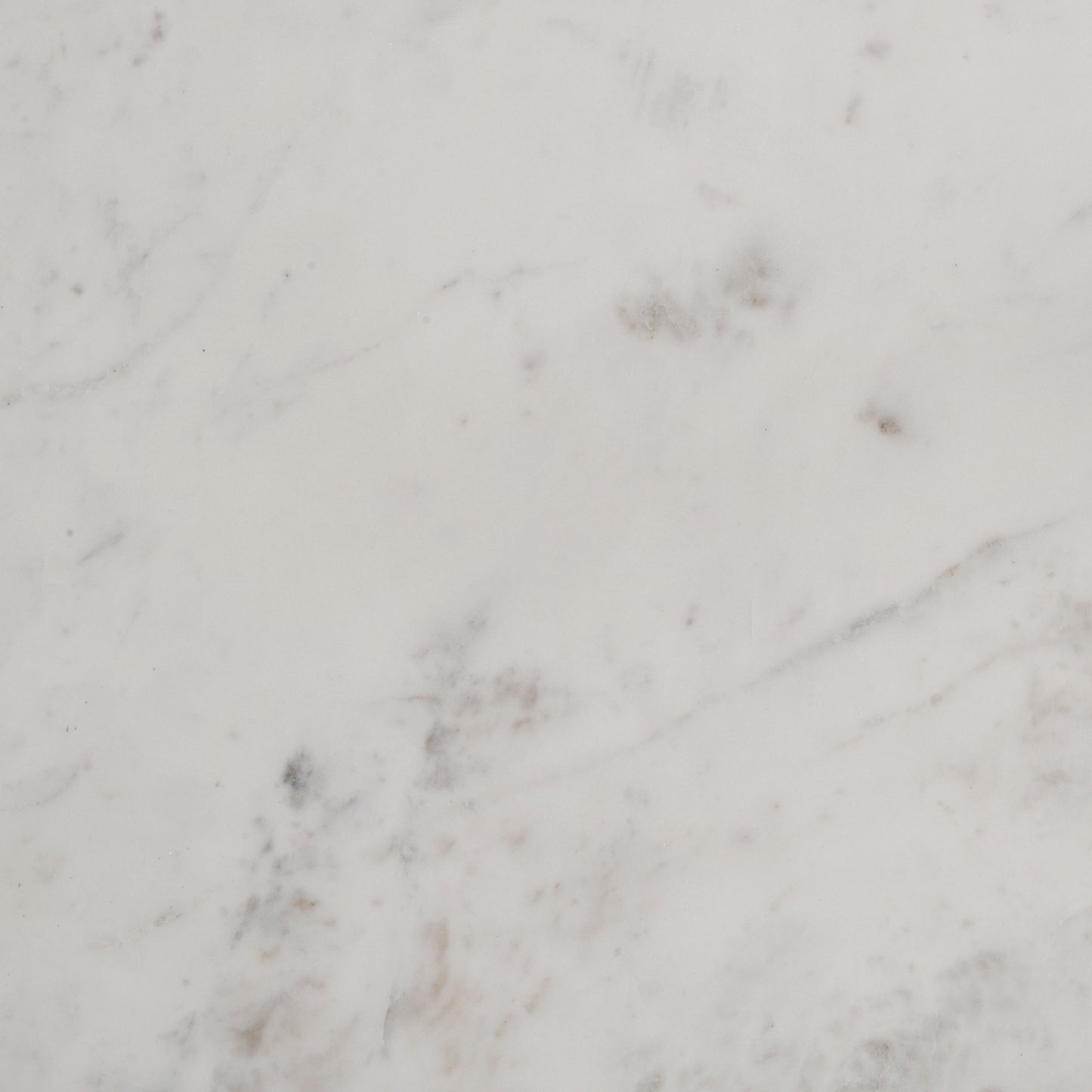 • Its top is a gorgeous slab of white marble, offering luxury and sophistication in any setting
