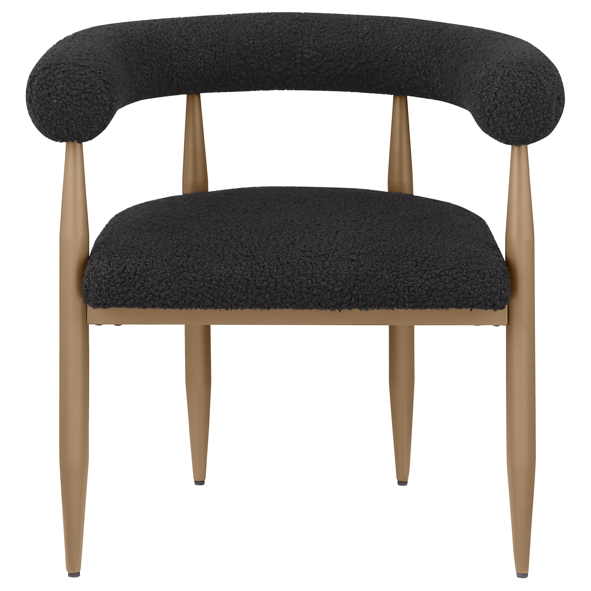 • Chairs features plush foam cushioning with black boucle fabric upholstery for a sleek, refined look