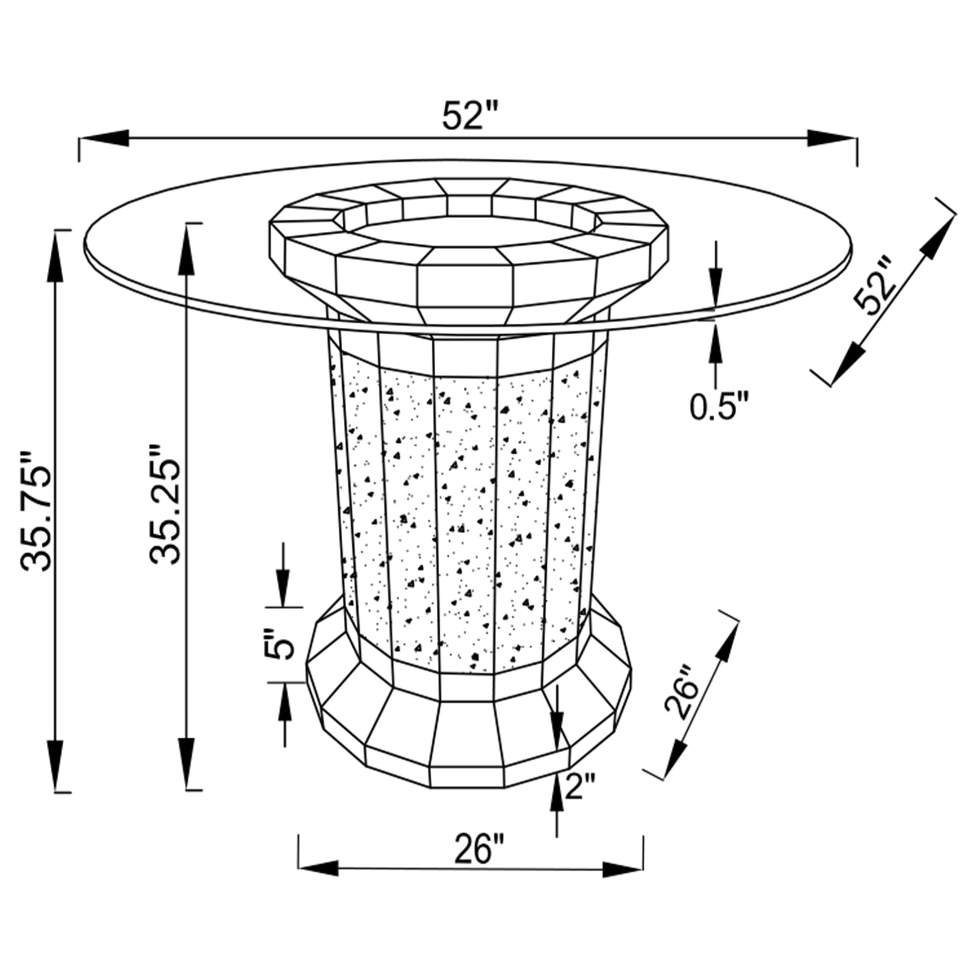 • Round clear glass tabletop and column-like pedestal base offers an open, airy feel