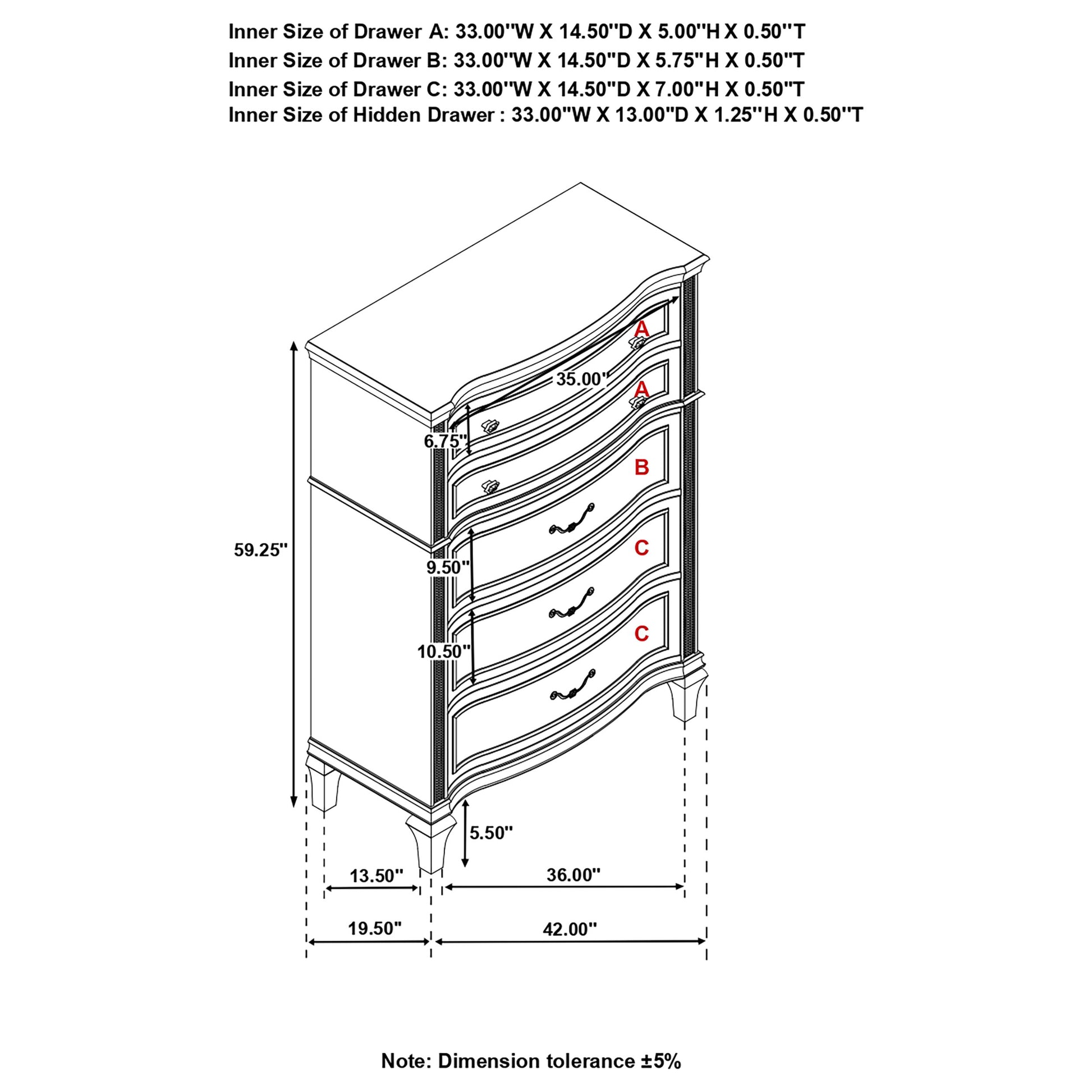Evangeline 6-drawer Bedroom Chest Silver Oak