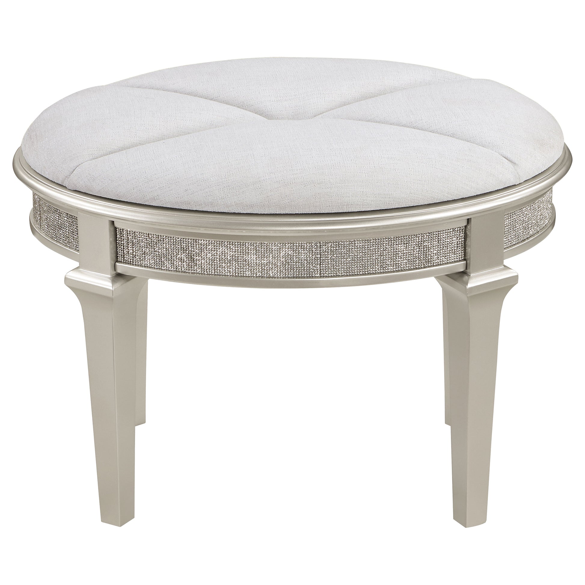 Evangeline Upholstered Oval Vanity Stool Silver and Ivory
