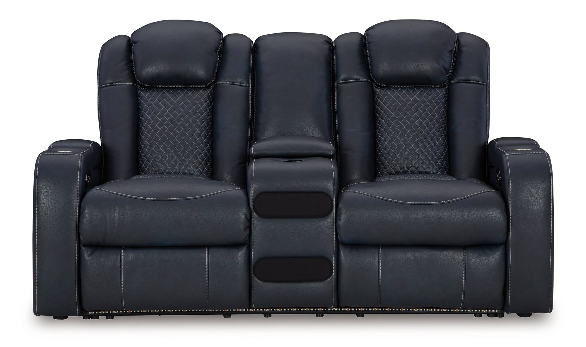 Details | One-touch power control with adjustable positions, Easy View™ adjustable headrest and zero-draw USB port, Zero-draw technology only consumes power when the USB receptacle is in use, Corner-blocked frame with metal reinforced seat, Attached cushions, High-quality foam cushions wrapped in poly fiber, Faux leather upholstery, Ambient blue LED lighting on base for a theater-style experience, Armrests with flip-top storage and cup holder, Console with storage, Built-in audio sound system with wireless connectivity; audio controls located on console, Power cord included; UL Listed | |