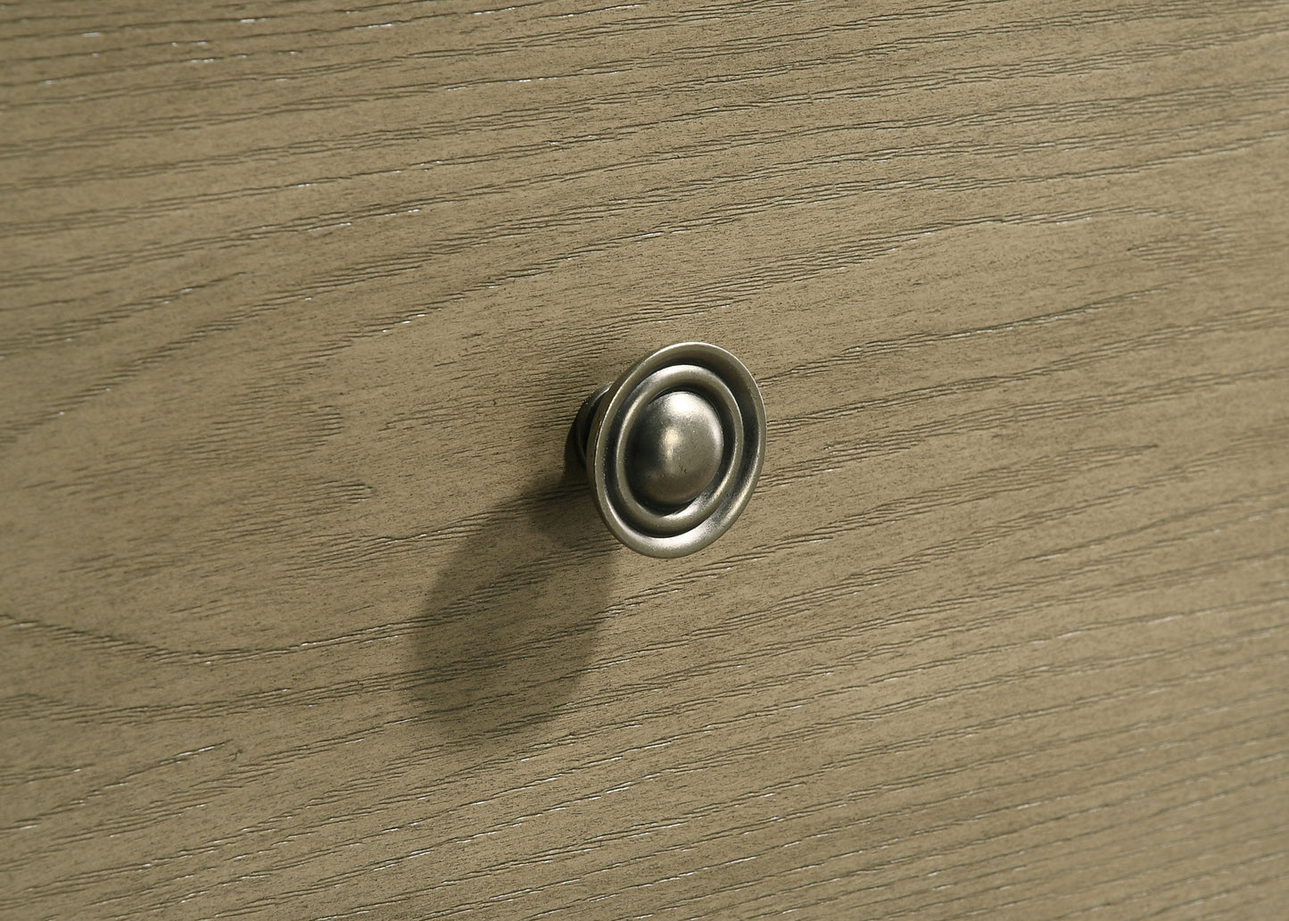 • Antique nickel metal knob and pull handles add contrast and a refined traditional touch