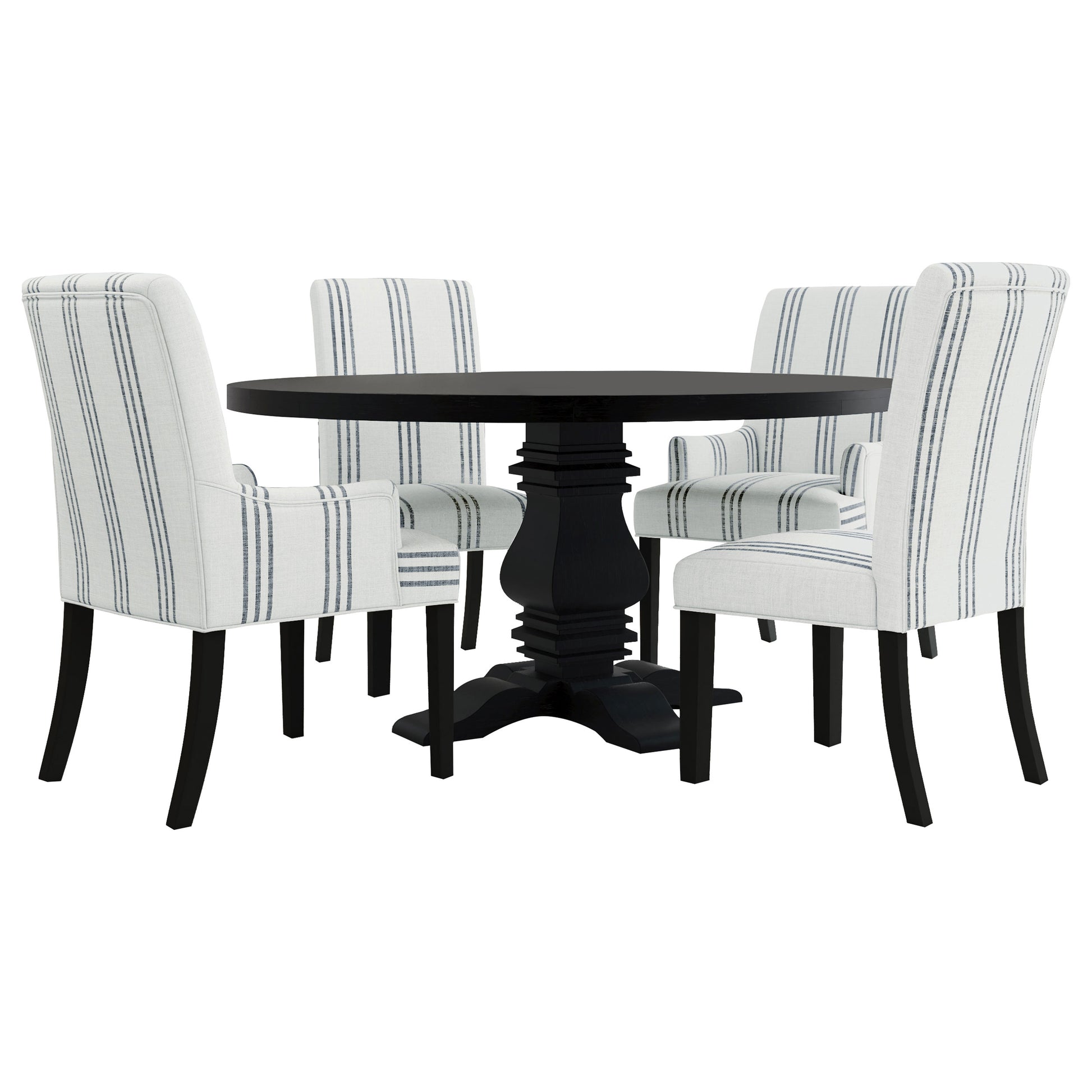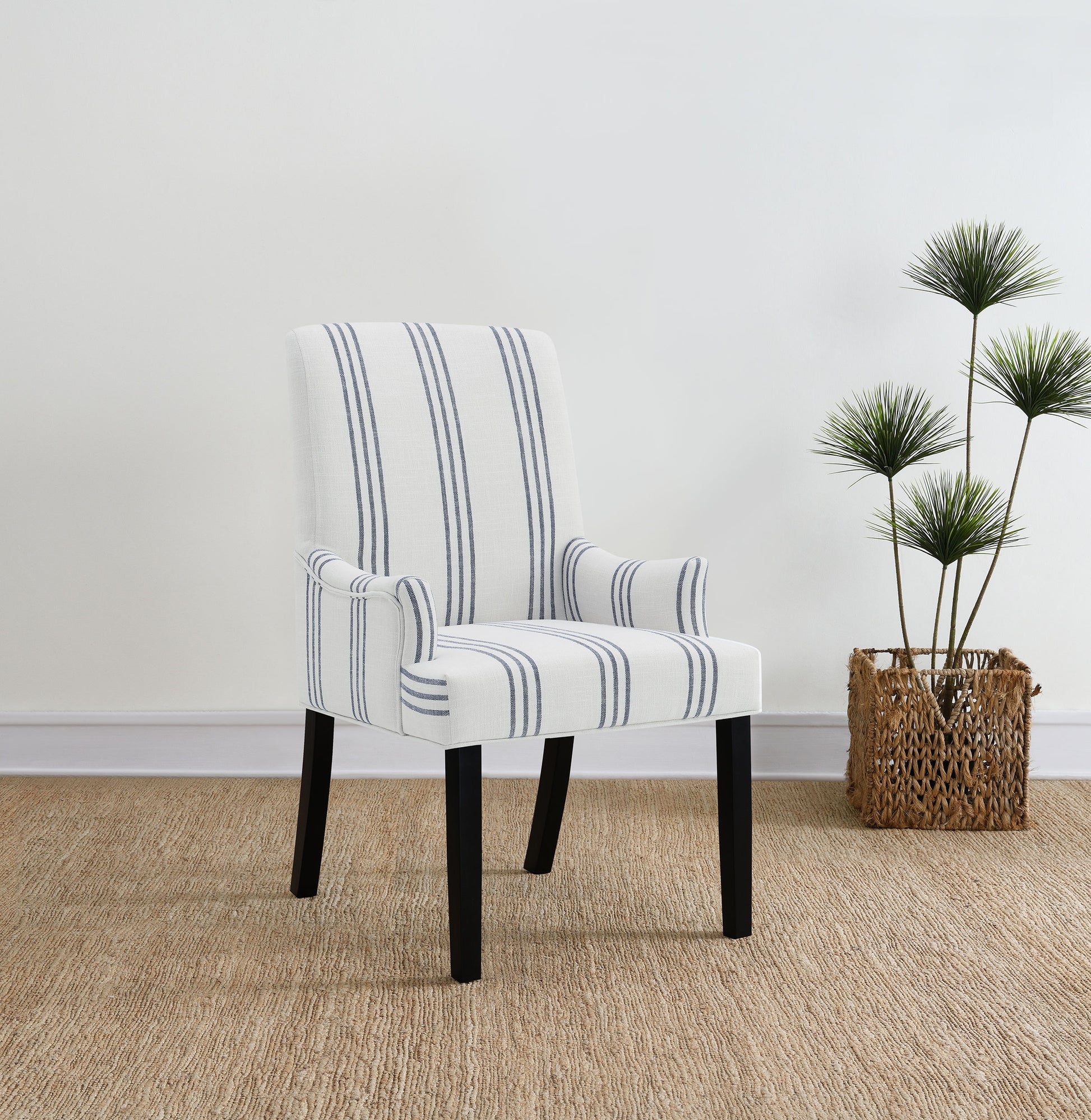 • Dining armchair upholstered in beige linen-like fabric with blue stripes for a casual, refined look