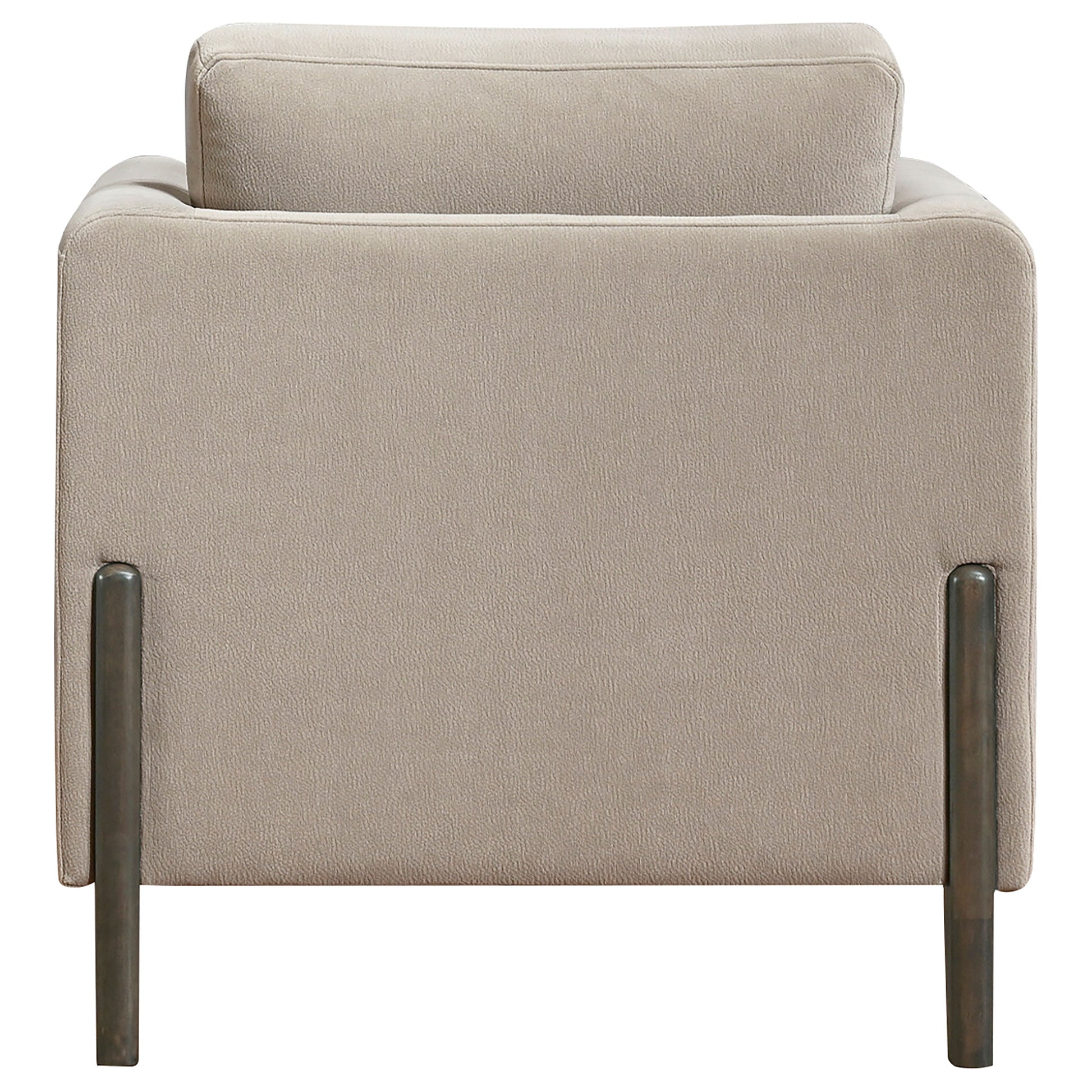 • Accent chair with panel arms and coffee frame delivers a structured, contemporary look