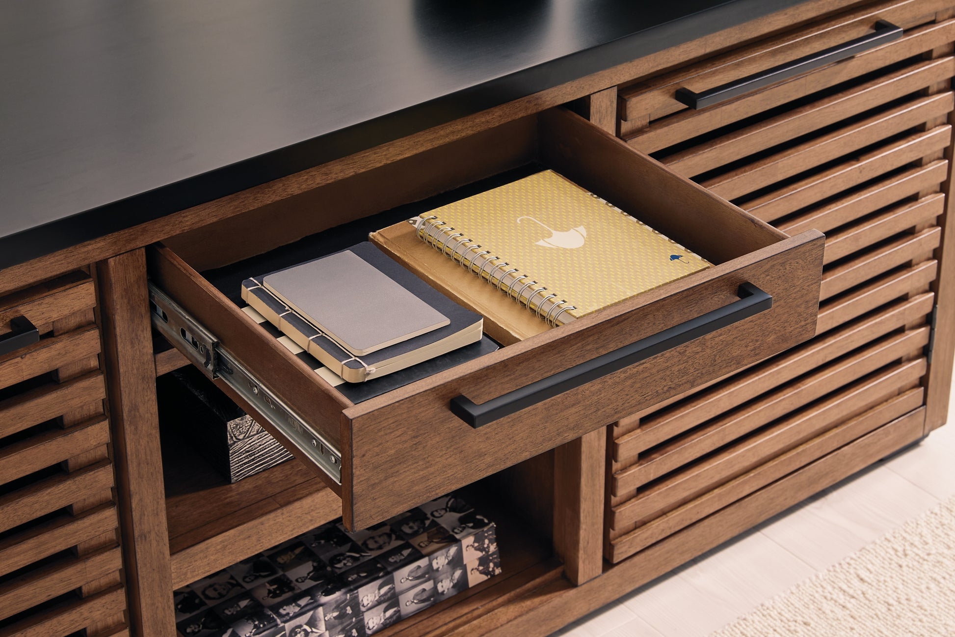 | Details | Made with hardwood solids, mango wood veneer and MDF substrates, Two-tone finish (medium warm brown wood tone and matte black), Bar pulls with blackened steel finish, Smooth-gliding drawer, 2 cabinet doors, 2 adjustable shelves, Open storage area, Assembly required | |