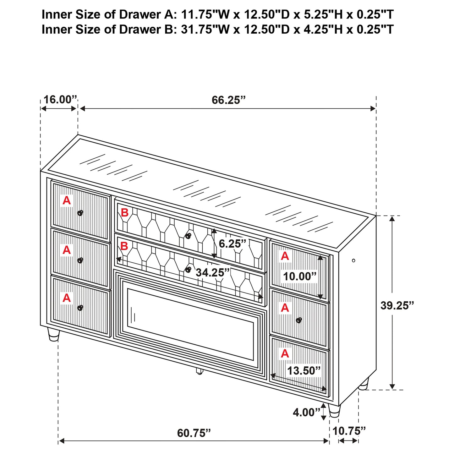 Lorient 8-drawer LED Flame Box Dresser and Mirror Ivory Camel