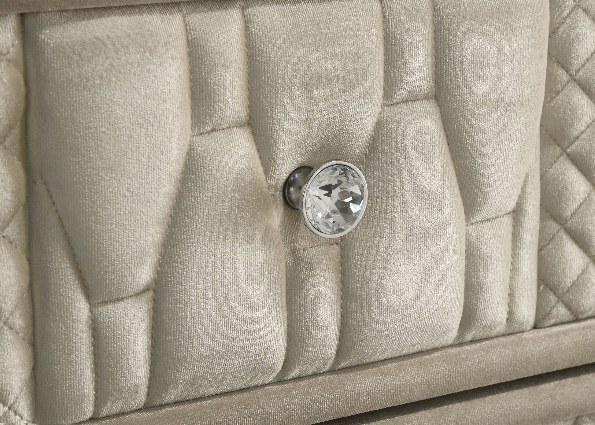 • Crystal knobs and acrylic legs provide both sparkle and structural support
