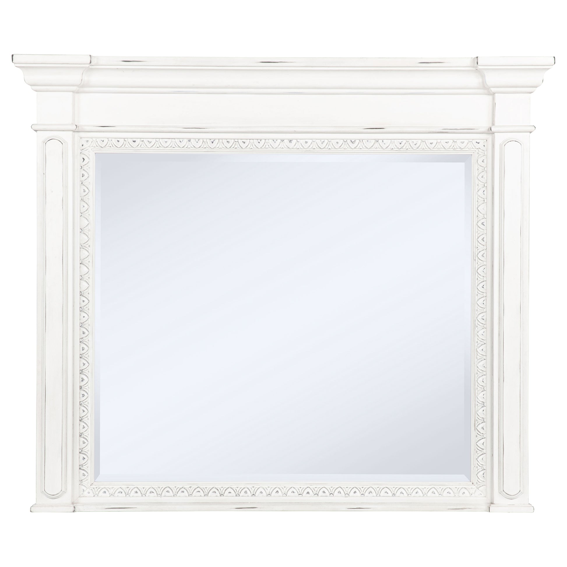 • Rectangular dresser mirror with crown molding and carved frame for graceful detail