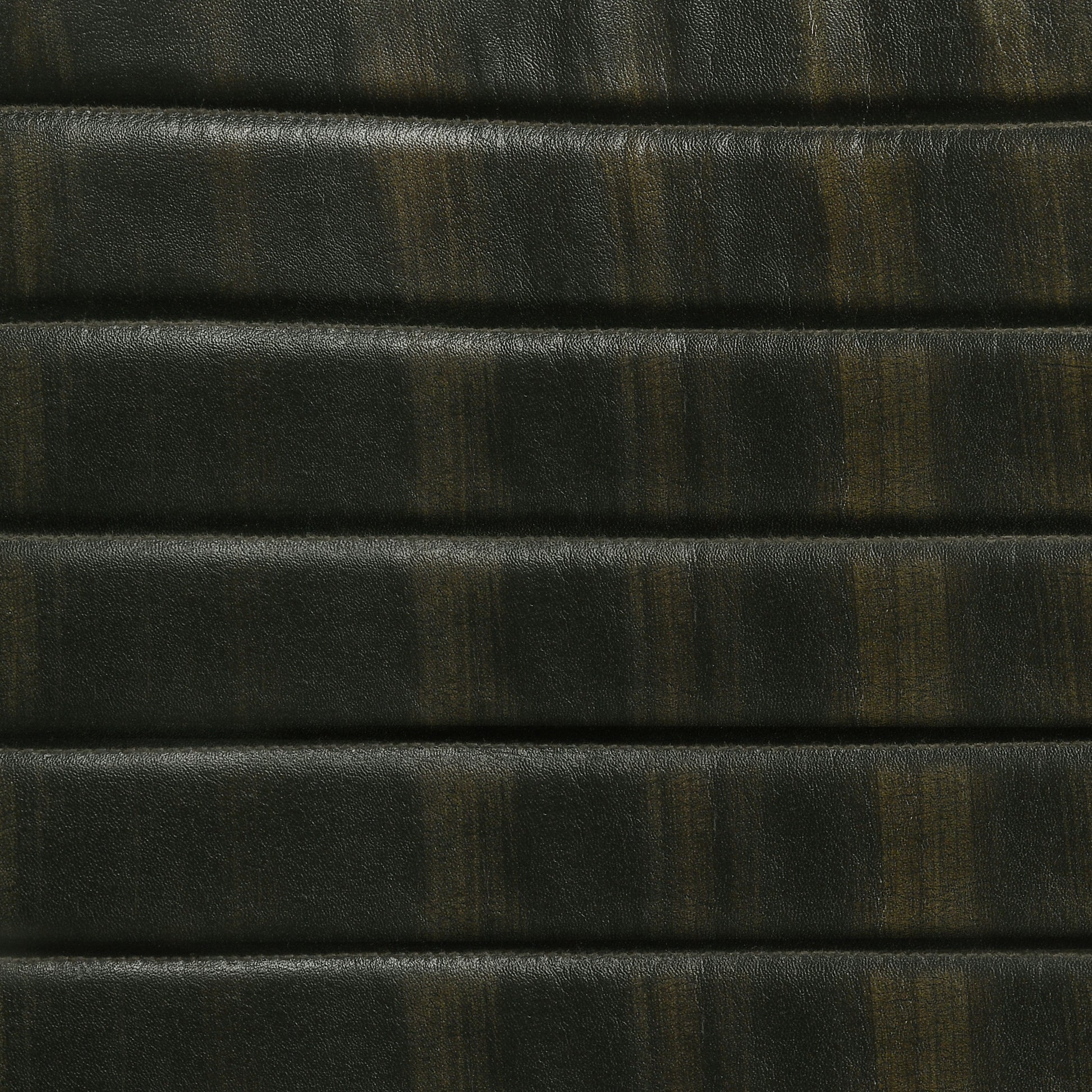 • Four comfortable counter stools with scoop seats and thick back, both with horizontally channeled leather upholstery, metal framing with iconic retro slender rounded, splayed legs