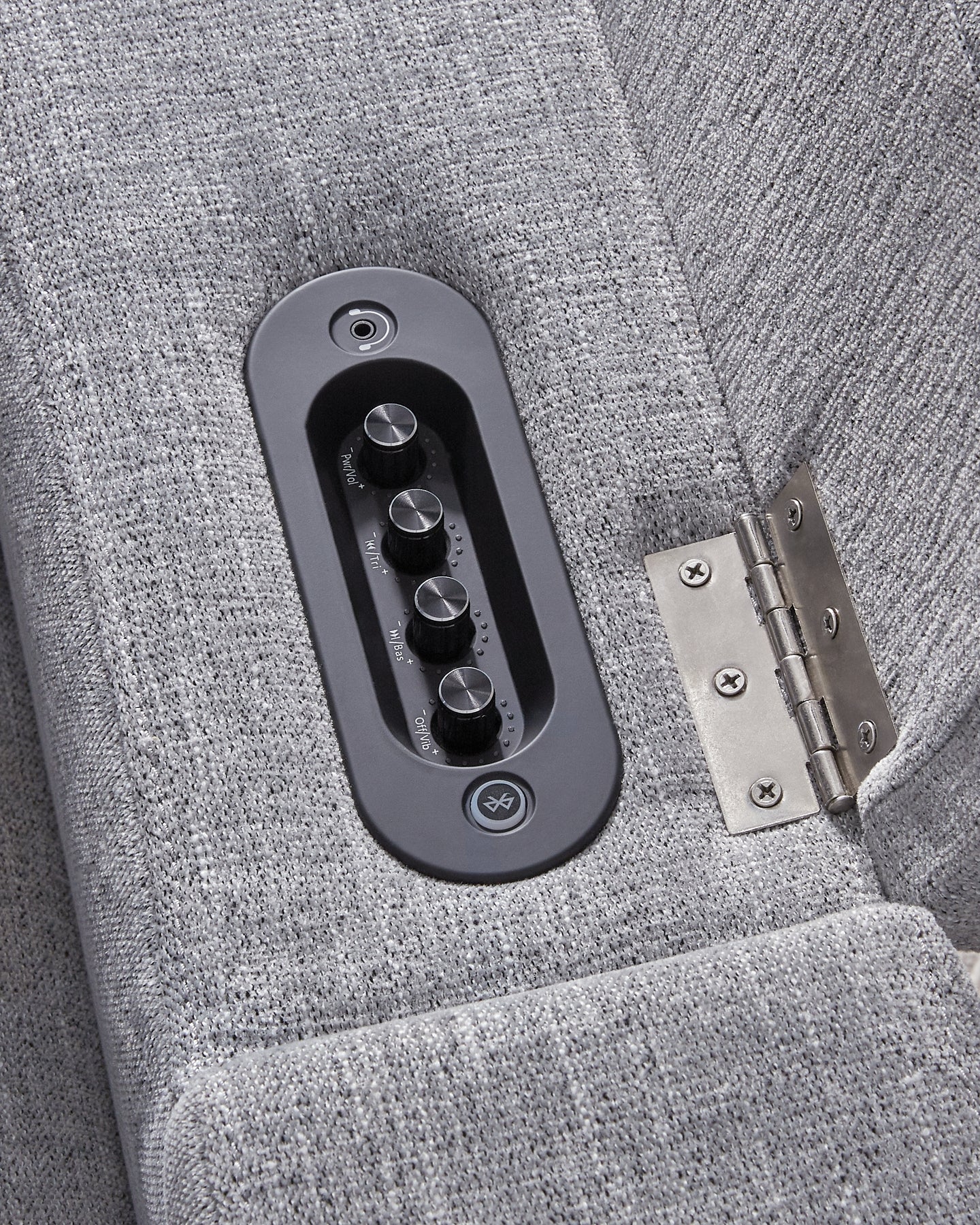 Details | One-touch remote control with adjustable positions, Easy View™ adjustable headrest, power lumbar support, LED lighting on/off and auto glide, Corner-blocked frame with metal reinforced seat, Attached cushions; high-quality foam cushions wrapped in poly fiber, Polyester upholstery; Next-Gen Nuvella™ is a family-friendly fabric that is soft, easy to clean, stain resistant and durable, Clean fabric with mild soap and water, let air dry; for stubborn stains, use a solution of 4 oz. bleach to 28 oz. water, Built-in premium quality audio sound system with wireless connectivity and sonic bass in the seat, Armrests with flip-top storage; hidden Thunder control panel with adjustable volume, treble, bass and vibration, Heat in the seat element (with automatic 30-minute shutoff feature), Air massage system includes 3 settings: steady, pulse and wave (with automatic 20-minute shutoff feature), Power glide feature with three levels: slow, medium and fast, Ambient blue LED lighting on base for theater-style experience, Power cord included; UL Listed | |