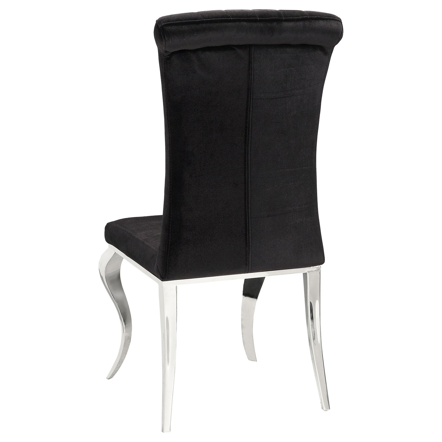 • Upholstered dining chairs in a plush velvet offer a soft and cozy seat