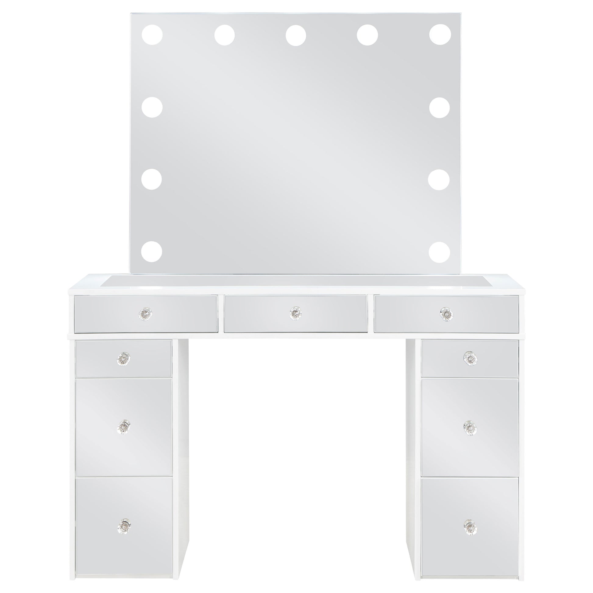 • Includes a mirror surrounded by bulbs, providing helpful lighting and enhancing the chic design