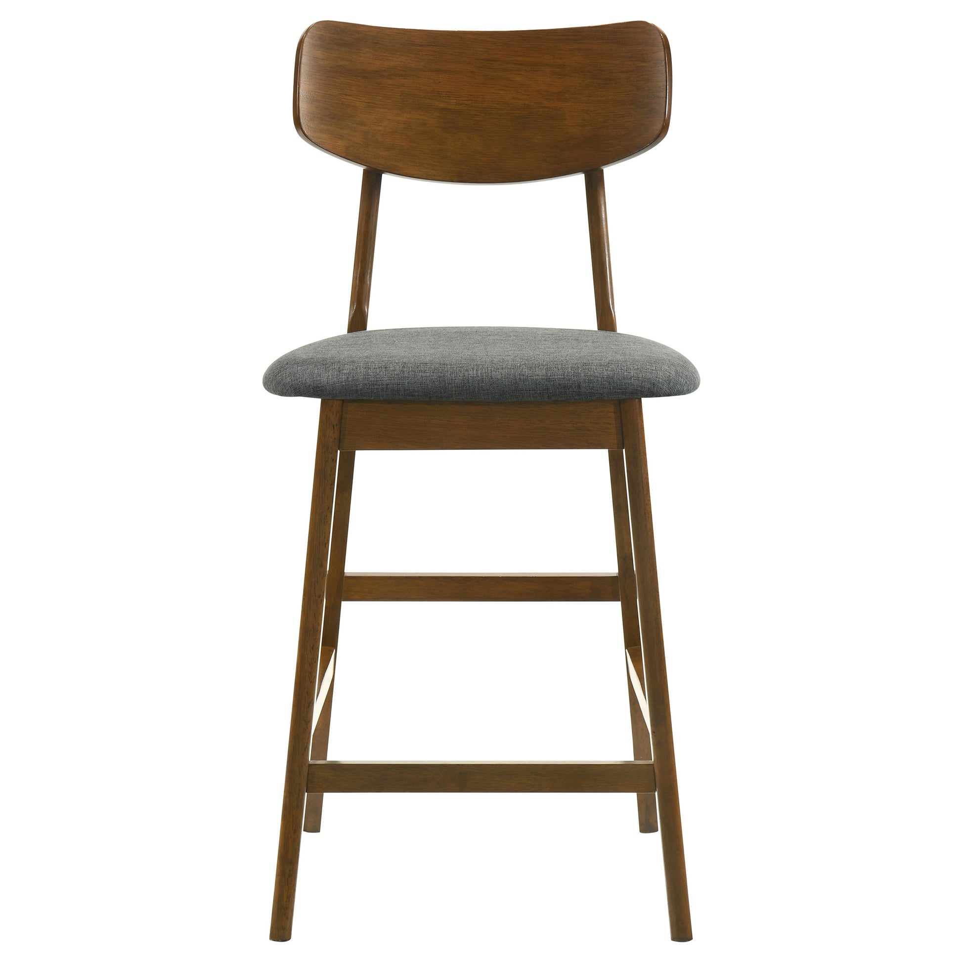 • Counter chairs features curved wood backs paired with foam seat cushions with soft gray fabric