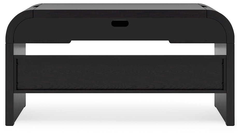 Details | Made with hardwood solids, oak veneer and MDF substrate, Black finish on textured wood grain surface, Burnished nickel-tone pulls, 2 small smooth-gliding drawers with fully finished interior, dovetail construction and ball-bearing side glides, 2 utility bins, Pull-out keyboard tray, Tray for cord management, 110V power supply with USB-A and USB-C charging ports, Power cord included; UL Listed, Assembly required | |