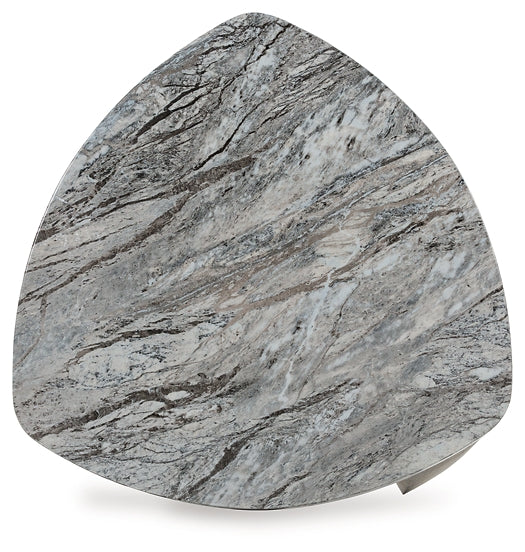 Details | Made with decorative laminates and MDF substrate, Tabletop with gray faux marble, Legs with replicated weathered gray wood grain | |