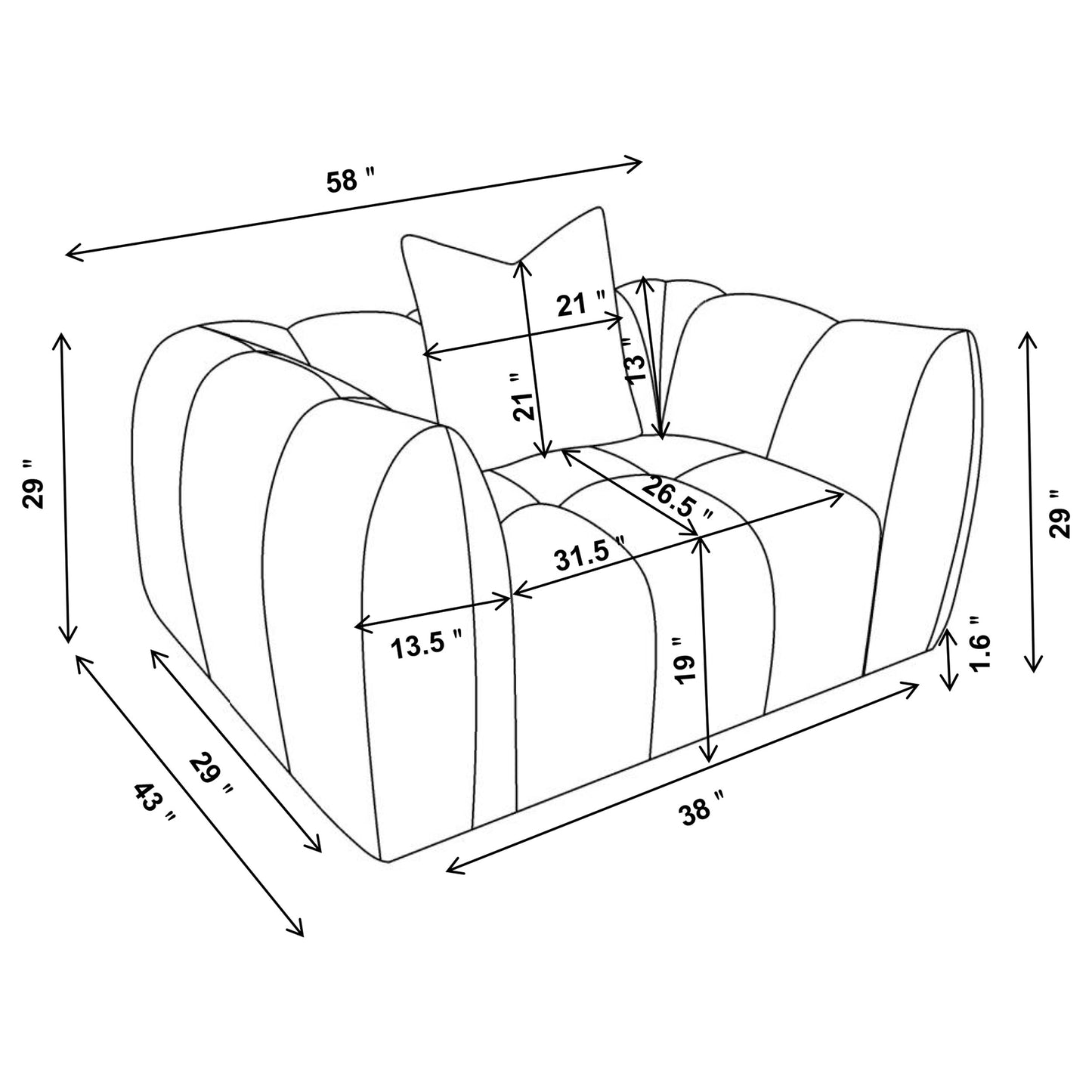 • Tufting adds character and texture to a modern chair-and-a-half accent armchair